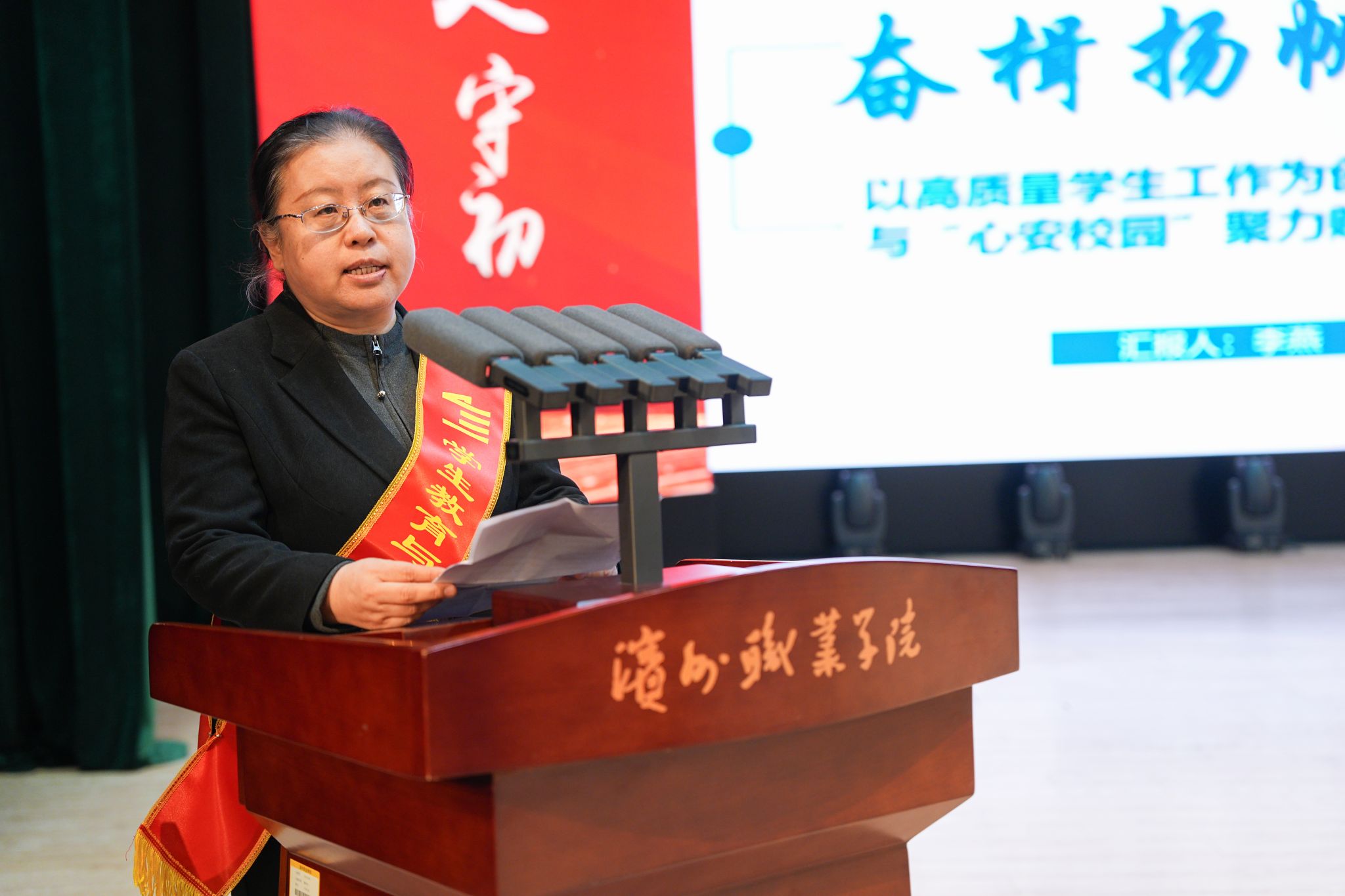 1月7日下午,滨州职业学院召开2024-2025学年学生工作总结表彰大会。党委书记刘荩一出席会议并讲话,党委副书记、院长申保忠主持会议,全体校领导出席会议。学校师生代表、学生家长代表参加会议。