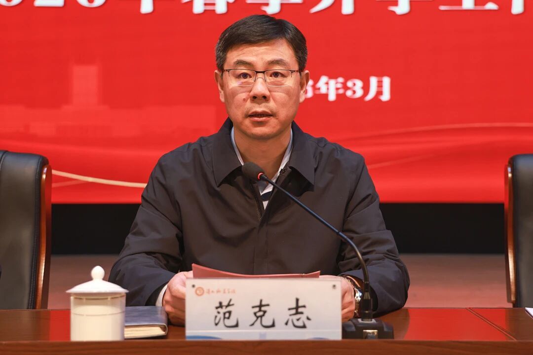 范克志传达全省、全市“新春第一会”会议精神。他强调,各院、各部门要切实把思想和行动统一到学校党委的决策部署上来,凝聚共识,形成推动发展的强大合力。在此基础上,要对照年度重点任务,科学制定详细的工作计划和落实方案,以“严、真、细、实、快”的工作作风,确保各项工作任务落地见效。全体党员干部要充分发挥先锋模范作用,勇于担当、主动作为,带头攻坚克难。全体教职员工要以“起步就是冲刺、开局就是决战”的奋斗姿态,迅速投入到新学期各项工作中,在各条战线上争创一流业绩。