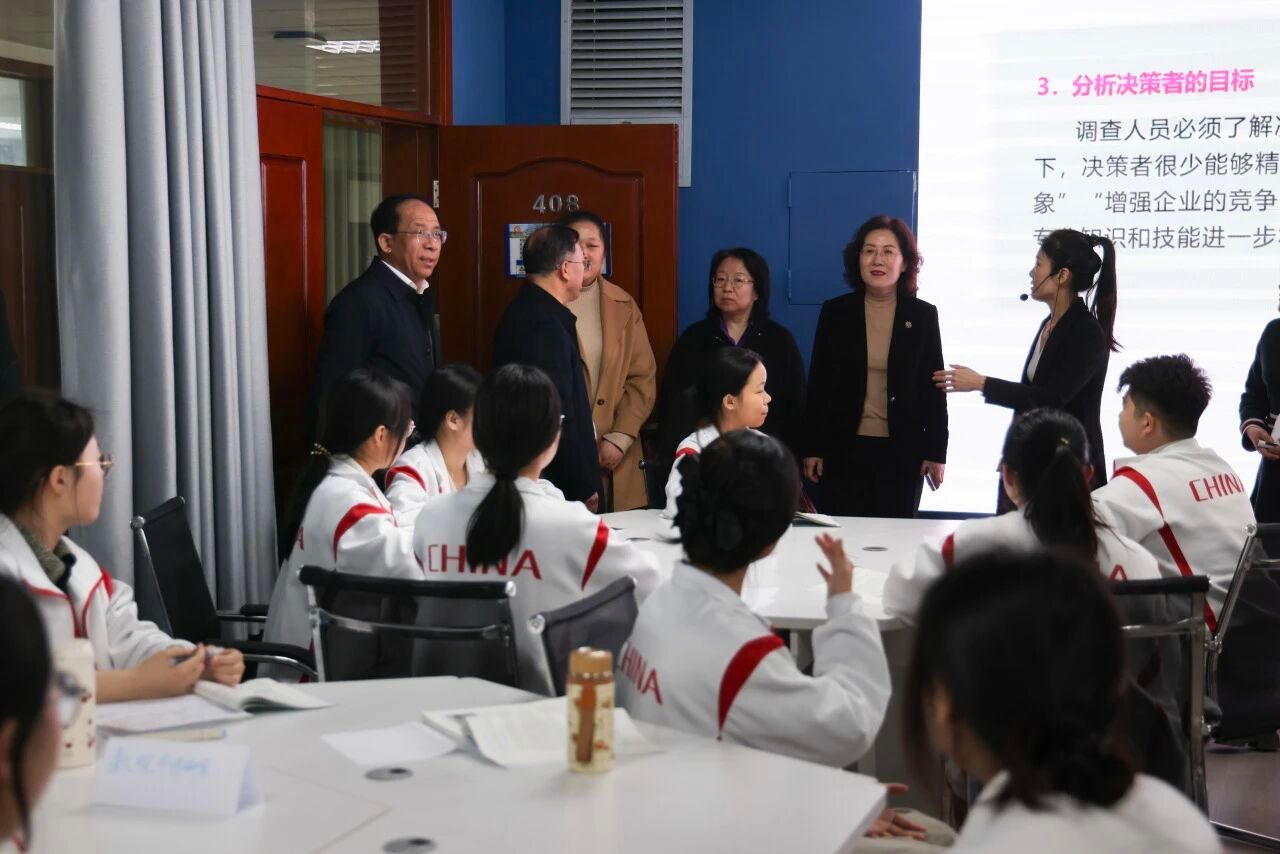 会前,刘恩允一行深入课堂,现场观摩2024级市场营销“3+2”专本贯通班教学实况,详细了解人才培养方案在专科阶段与本科阶段的贯通衔接情况。随后参观了校史馆、黄河三角洲高技能人才实训广场,实地调研学校在厚植工匠精神、强化技能培养、服务区域发展等方面的创新实践。