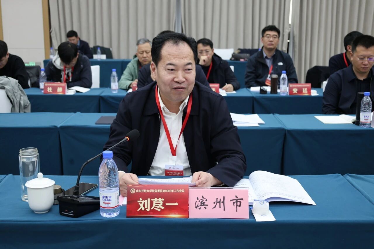 3月31日,山东开放大学校务委员会2026年工作会议召开。山东省教育厅二级巡视员邓俊庆,山东开放大学党委副书记、校长司家军出席会议并讲话,学校党委副书记王瑛主持会议。滨州职业学院党委书记刘荩一受邀参加会议并作交流发言,党委委员、副院长王进博参加会议。